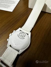 •Cinturino originale bianco con logo Omega e Swatch