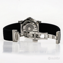 Quadrante nero, lancette e indici di color argento, dimensioni della cassa 37mm, movimento quarzo svizzero, cinutirno di gomma nera con chiusura a farfalla, lunghezza del lucchetto 20mm, resistenza all'acqua 50 m (5 ATM, 169 ft)