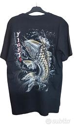 T-shirt nera con carpa Koi dorata, 3d,fluo, RockChang, glow in the dark