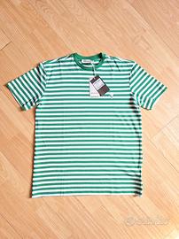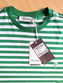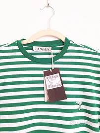 Maglietta Trussardi da uomo in jersey, con trama a righe bianche e verdi e logo ricamato sul petto. Taglia S uomo. Nuova, ricevuta in regalo e mai indossata.