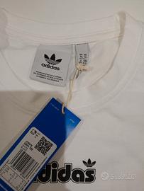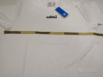 T-shirt Adidas bianca con scritta centrale nuova con cartellino 100% cotone taglia XL(vestibilità comoda)