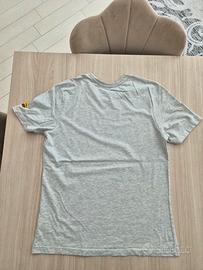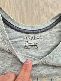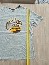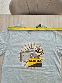 T-shirt grigia con stampa vintage Algida. - Stampa raffigurante un vecchio stereo e un cono gelato. - Dettaglio Algida sulla stampa.