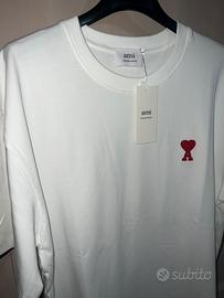 T-shirt ami alexandee mattiussi, total whit stile over size con logo al petto.