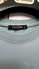Maglietta azzurro chiaro con ricamo frontale “Prada Milano”.