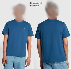 Maglietta mezza manica, 100% cotone, NUOVA con etichetta, mai usata, marca Farah, modello Danny, colore azzurro/blu (steel blue), taglia S, vestibilità regular, scollo tondo, Codice articolo: FA522O04G-K11.