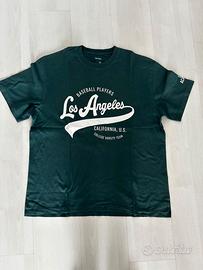 Aggiungi un tocco di stile sportivo-college al tuo outfit con questa t-shirt Bershka verde scuro a maniche corte, caratterizzata da una grafica ispirata al mondo del baseball di Los Angeles.