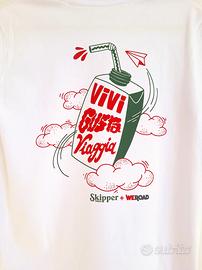 Disegno e scritta posteriore "Vivi Gusta Viaggia". Taglia S unisex, mai indossata.