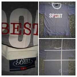 Il tessuto sembra morbido e leggero. - Presenta una stampa frontale con la scritta "SPORT BEST" in bianco e rosso. - Ha un colletto a coste bianco. - Perfetta per la primavera/estate.