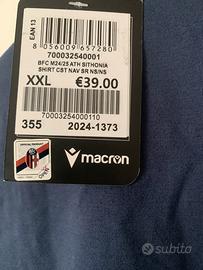 t shirt blu manica corta del Bologna Fc prodotta da Macron 93% cotone 7% Elastane