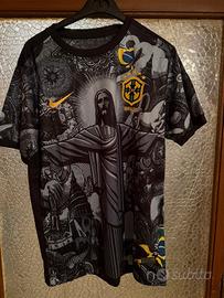 In vendita splendida maglia del Brasile Edizione Speciale, caratterizzata dall’esclusiva grafica artistica del Cristo Redentore di Rio de Janeiro. Un pezzo unico, perfetto per appassionati di calcio e collezionisti che cercano un design ricercato e diverso dalle classiche divise da gioco. Design: Grafica monocromatica nera e grigia con dettagli gialli (Swoosh e stemma CBF). Dettagli: Stampa ad alta definizione che integra elementi iconici della cultura brasiliana. Materiale: Tessuto tecnico traspirante, ideale sia per lo sport che per sportwear
