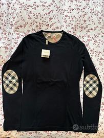 Maniche lunghe con toppe in tessuto Burberry sui gomiti, color nero, ORIGINALE
