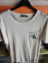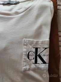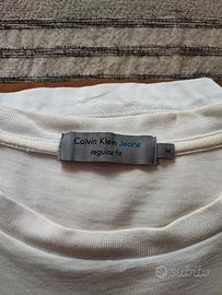 T-shirt Calvin Klein uomo TG M bianca con marca a vista