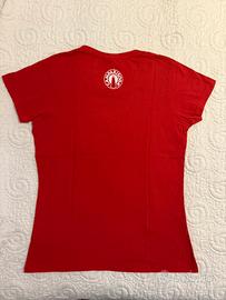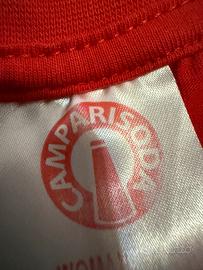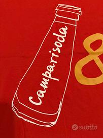 T-shirt rossa con stampa. - Stampa frontale con una bottiglia di Campari Soda e la lettera &. - Girocollo e maniche corte. - Sfiancata. - Stampa logo Campari sul retro.