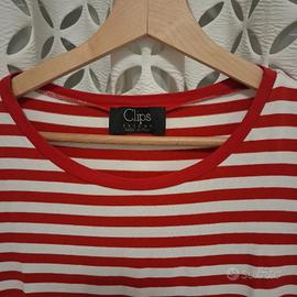 maglia a maniche corte, bianca e roosa, marchio Clips, molto bella