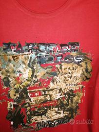 Bellissima t-shirt da uomo con maniche lunghe, rossa con disegni, tg. XL, marca Iceberg.