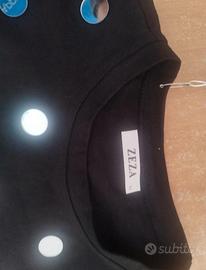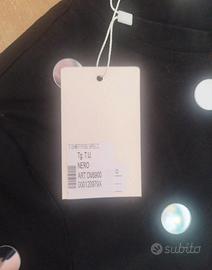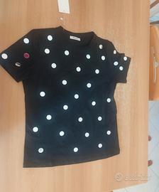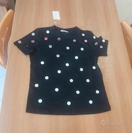 T- shirt fondo nero con pois a specchio, taglia unica.