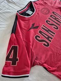 T-shirt DIADORA "SAN SIRO" bicolore col numero 4 sulla manica. Unico difetto un forellino in fondoschiena sul retro nero facilmente riparabile.