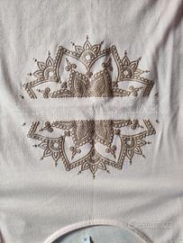T-shirt rosa con spalle scoperte e stampa bianca sul davanti, in cotone. Indossata poche volte, praticamente nuova.
