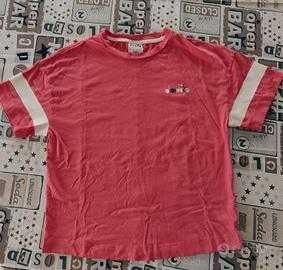 Maglietta girocollo a maniche corte, colore fucsia, dettagli a contrasto sulle maniche, logo sul petto. Tessuto morbido e leggerissimo 100% cotone BIOLOGICO.
