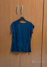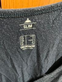 T-shirt donna Decathlon blu navy modello slim fit taglia M ideale per sport e tempo libero con scollo a V e maniche corte. Il capo presenta una larghezza di 50 cm e una lunghezza totale di 56 cm come verificabile dalle foto con misure reali. Tessuto leggero, traspirante e versatile, perfetto per l'allenamento in palestra o un look casual quotidiano, mantenuto in ottime condizioni generali senza difetti evidenti. Taglia europea M corrispondente a una S americana, ideale per chi cerca una vestibilità aderente ma confortevole durante il movimento. Spedizione rapida e imballaggio curato garantiti per questo articolo essenziale del brand