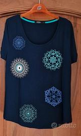 T-shirt donna Desigual manica corta Sonja colore blu tg. L. 50% cotone 50% modal Scollo rotondo ampio. Indossata un paio di volte. Ottima vestibilità. Manca etichetta interna.