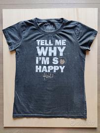 Simpatica, divertente ed ironica T-shirt da donna a tema Heidi, la ragazzina delle Alpi della serie animata del 1974, con stampa frontale "Tell me why I'm so happy".