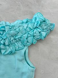 Caratterizzata da un dettaglio decorativo lungo entrambe le spalle, può essere indossata sia con le spalle coperte che scese, per valorizzare con stile il décolleté. Femminile, versatile e perfetta sia per il giorno che per la sera.