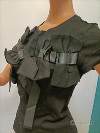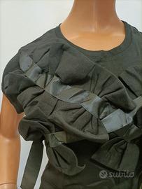 T-shirt donna con fiocchi, girocollo, colore nero. Composizione: 95% Cotone - 5% Elastane. Taglia S/M. Misure: Spalle 35 Cm - Lunghezza 60 Cm. Video articolo e altri articoli disponibili sul profilo facebook 2EFFEMOD