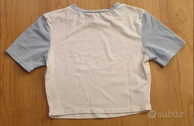 Maglietta corta da donna, colori bianco e azzurro, con scritta Los Angeles USA, marca Shein, taglia Small, in ottime condizioni