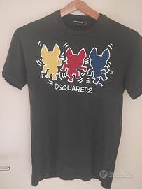 T-shirt Dsquared unisex nera con stampa cani taglia m