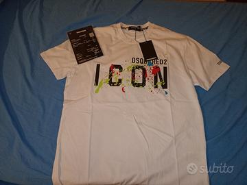 Maglietta DSQUARED2 bianca e multi color nuova mai indossata con cartellino