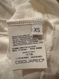 T-shirt DSQUARED2 tempestata di Swarovski. Taglia XS . Per un’occasione importante. Composizione : 70% cotone 30% lino Misure: spalle cm. 41 lunghezza 62