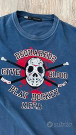 T-shirt originale Dsquared2 da uomo, taglia M colore blu con logo distintivo sul fronte.