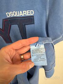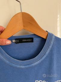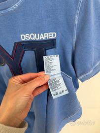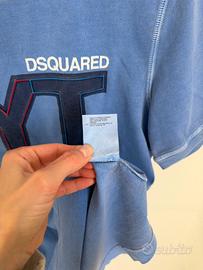 T-shirt Dsquared2 Vintage "PYT" - Blu - Condizioni Ottime Misura S Spalle 42 cm, lunghezza 70 cm, da ascella ad ascella 50 cm, manica 22 cm La t-shirt è caratterizzato dalla maxi applicazione frontale "PYT" con dettagli colorati a contrasto e logo del brand ricamato sopra la lettera "T". Condizioni: Ottime Dettagli: Cuciture a vista in contrasto che esaltano il taglio del capo. Tessuto in cotone di alta qualità, morbido al tatto. Vestibilità:regolare , asciutta tipica del brand. Stile: Perfetta per un look streetwear ricercato o per collezionisti del marchio dei gemelli Caten. Impeccabile