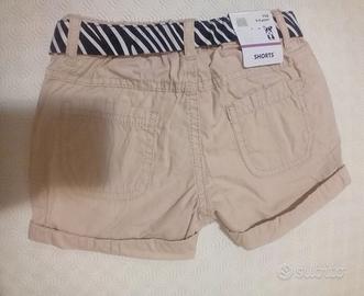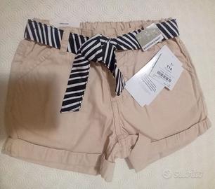 T shirt rosa con stampa gatto e pantaloncino beige con cintura per bambina 5/6 anni, nuovo con cartellino