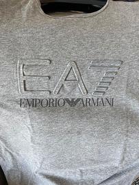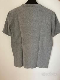Vendo T shirt Emporio Armani grigia con logo in rilievo, capo campione. Utilizzata poco e ancora in condizioni eccellenti, senza segni di usura.