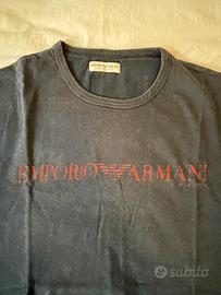 T-shirt di Emporio Armani colore blu con scritta rossa. In buona stato, scritta un po’ scolorita come da foto. Taglia S.