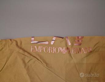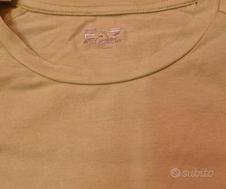 Vendo t-shirt Emporio Armani EA7 taglia L in una particolare tonalità color verde/lime. Il pezzo forte è la maxi stampa sulla spalla e manica sinistra in metallizzato, con logo e scritta del brand perfettamente integri.Grazie al 5% di elastan, la maglia è elasticizzata e si adatta perfettamente alla forma del corpo (effetto slim fit).Per il resto e' 95% cotone.
