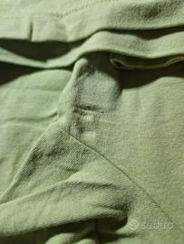 La maglietta è stata tenuta con cura, ma segnalo per correttezza:la stampa del loto sotto il colletto e' un po' sbiadita,e nella zona ascellare sono presendi 2 segnetti non troppo rilevanti se non visti in vicinanza.Lunghezza spalle 55,lunghezza 65 cm.