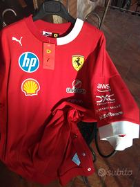 Ferrari Puma HP Piloti nuova originale con cartellino mis. L Oversize veste L e XL cotone pesante tipo felpa con bottoncini a pressione laterali, loghi sponsor sulle maniche e bordo colletto bicolore uguale a quelle indossate da Leclerc e Hamilton. Euro 65 + spedizione contatti telefonici o whatsapp 3318896445