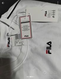T-shirt Fila uomo in cotone bianco e dettagli blu , manica lunga,nuova con cartellino