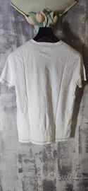 Bellissima maglietta a maniche corte firmata Freddy, ispirata al mondo del pugilato. Il capo presenta una colorazione bianco panna con grafiche in stile "Brooklyn Boxing Academy" e l'indirizzo storico 770 Eastern Parkway. La qualità dei dettagli è molto alta: la scritta centrale Freddy è realizzata con inserti in rilievo effetto "distressed", mentre le cuciture a contrasto e l'etichetta esterna applicata sul retro con punti arancioni a vista donano un tocco artigianale e vissuto. Il tessuto è un cotone leggero e confortevole, perfetto per il tempo libero o per un look sportivo ricercato. La t-shirt è in ottime condizioni generali, senza macchie o buchi, pronta per essere indossata.