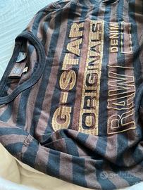 T-shirt G-Star Originals, in puro cotone, a righe orizzontali su fondo scuro, taglia M. Perfetto per le sere estive e autunnali.