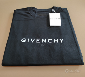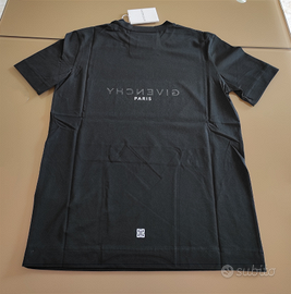 - cod. BM71653Y6B col. 001 logo reverse in jersey di cotone nel colore nero con firme GIVENCHY PARIS dall'effetto capovolto stampate sia sul fronte che sul retro e piccolo logo 4G stampato in colore bianco sul retro: prezzo di cartellino Euro 390, liquido ad Euro 179.