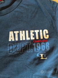 Maglietta greenland sport Athletic Dept 1968, ottime condizioni, non presenta nessun difetto, colore blu. Taglia: XXL, ma veste come una L.