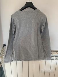 T-shirt grigia con motivi Trussardi Jeans, maniche lunghe, 100% cotone , taglia M (manca etichetta ma è tutto cotone e la taglia è M). In ottime condizioni