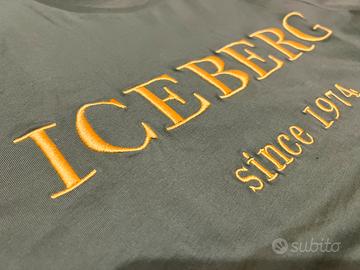 T-shirt Iceberg, taglia S, colore verde militare, logo ricamato