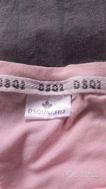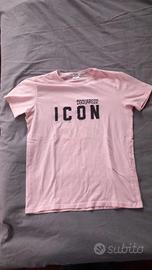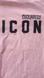 Maglietta rosa con scritta ICON e logo Dsquared2. - Colore principale: rosa. - Scritta ICON in nero. - Logo Dsquared2 sopra la scritta.