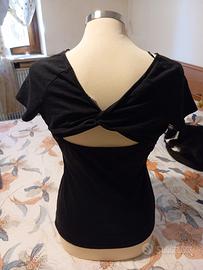 T-shirt in cotone elasticizzato, nera, con particolare sulla schiena. Motivi taglia M, pari al nuovo