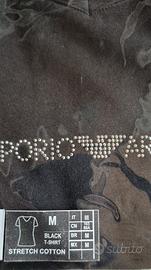 T-shirt in cotone nero Emporio Armani con scollo a V e con logo in strass scritto sul petto davanti. Misura S - M - L. Disponibili anche altre misure e pur nei colori bianco e blu navy Armani.